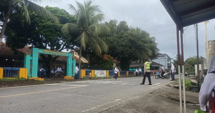 Kegiatan dipimpin oleh Aipda Iman dan Bripka Madsaid, yang tidak hanya mengatur arus kendaraan, tetapi juga membantu para pelajar menyeberang jalan dengan aman saat berangkat sekolah.