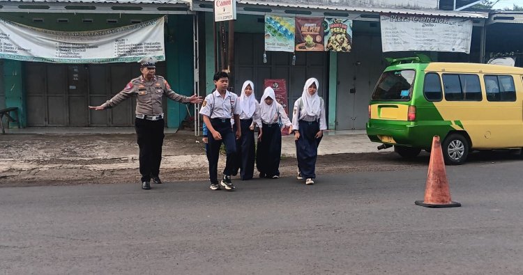 TASIKMALAYA - Suasana pagi di depan SMPN 1 Karangnunggal, Kecamatan Karangnunggal, Kabupaten Tasikmalaya, pada Selasa (23/9/25) terasa berbeda. Di tengah hiruk pikuk aktivitas pagi para pelajar yang bersiap memulai hari, kehadiran anggota Polsek Karangnunggal menjadi penyejuk. Mereka tidak hanya berdiri tegak mengatur arus kendaraan, namun juga sigap mengulurkan tangan membantu para siswa menyeberang jalan, memastikan setiap langkah kecil mereka aman.