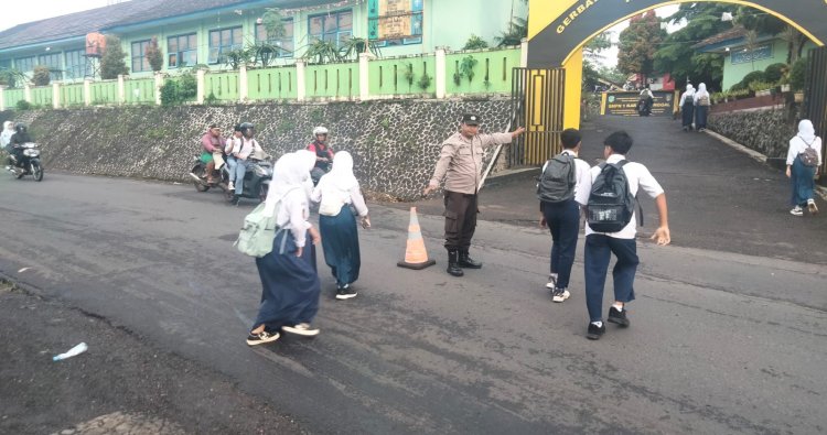 TASIKMALAYA - Senin pagi di depan SMPN 1 Karangnunggal, Kecamatan Karangnunggal, Kabupaten Tasikmalaya, terasa lebih aman berkat kehadiran anggota Polsek Karangnunggal. Mereka tidak hanya mengatur arus lalu lintas yang mulai ramai, tetapi juga dengan sigap membantu para pelajar menyeberang jalan, memastikan setiap langkah kecil mereka di jalan raya terjamin keselamatannya.